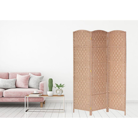 3 Panel Room Divider Privacy Screen Diamond Weave Fiber