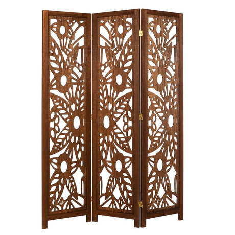 3 Panels Screen Room Divider Decorative Floral Wood Cutouts