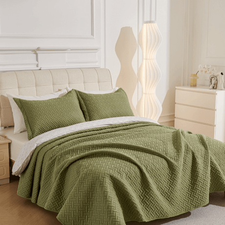 3 PCS Pinsonic Stitched Reversible Oversized Bedspread Sage Color