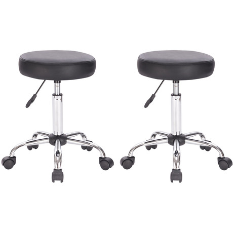 Set of 2 Black Adjustable Height Pneumatic Round Roller Stool